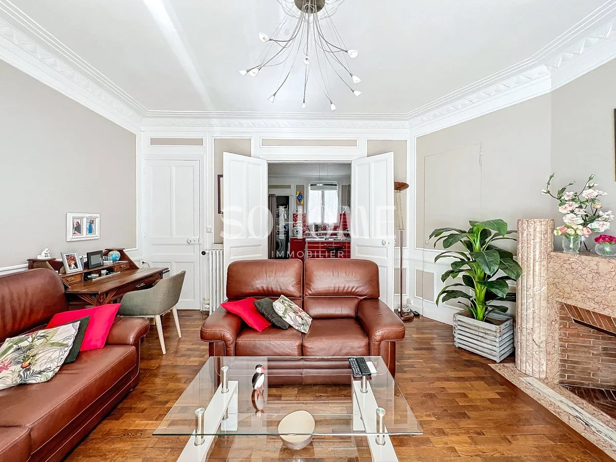 Ce bel appartement situé en hyper centre de Reims et récemment rénové a su conserver tout le cachet de l’ancien avec notamment ses parquets massifs, ses cimaises et ses belles cheminées d’époque.