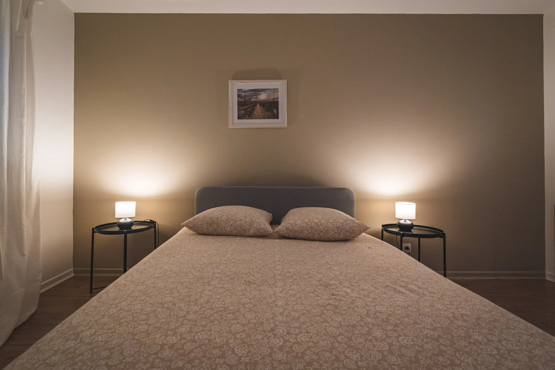 Les trois chambres, spacieuses et climatisées, profitent-elles aussi de cette impression de sérénité lumineuse. La salle de douche, sobre et parfaitement rénovée, complète l’ensemble avec un esprit contemporain.