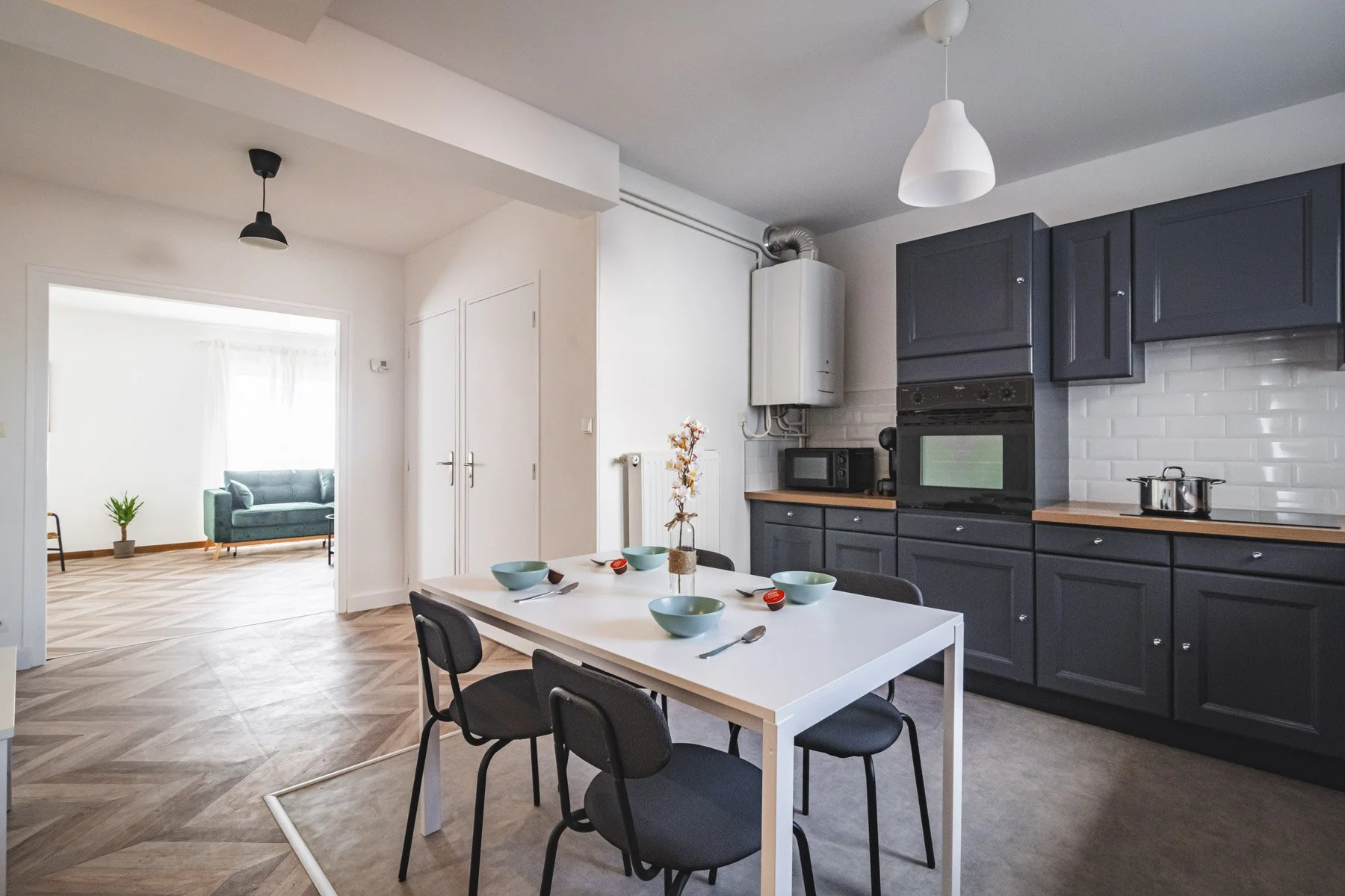 Au cœur d’un quartier paisible, HALO déploie ses 99,70m2 entièrement rénovés, avec le confort subtil des lieux pensés pour respirer. Dès l’entrée, l’œil est guidé par une grande pièce de vie, où la cuisine ouverte dialogique naturellement avec le salon.